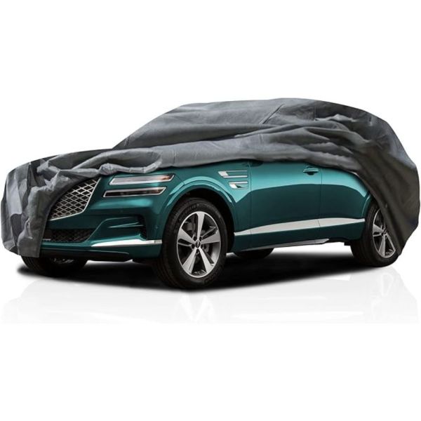 The WeatherTec UHD 5 Layer SUV Cover for Genesis GV80 2021 features a water-resistant outer layer, UV-blocking technology, and a soft inner lining to protect your car’s paint from scratches. Its breathable design prevents moisture buildup, while reinforced buckle straps and an elastic hem deliver a snug, windproof fit.