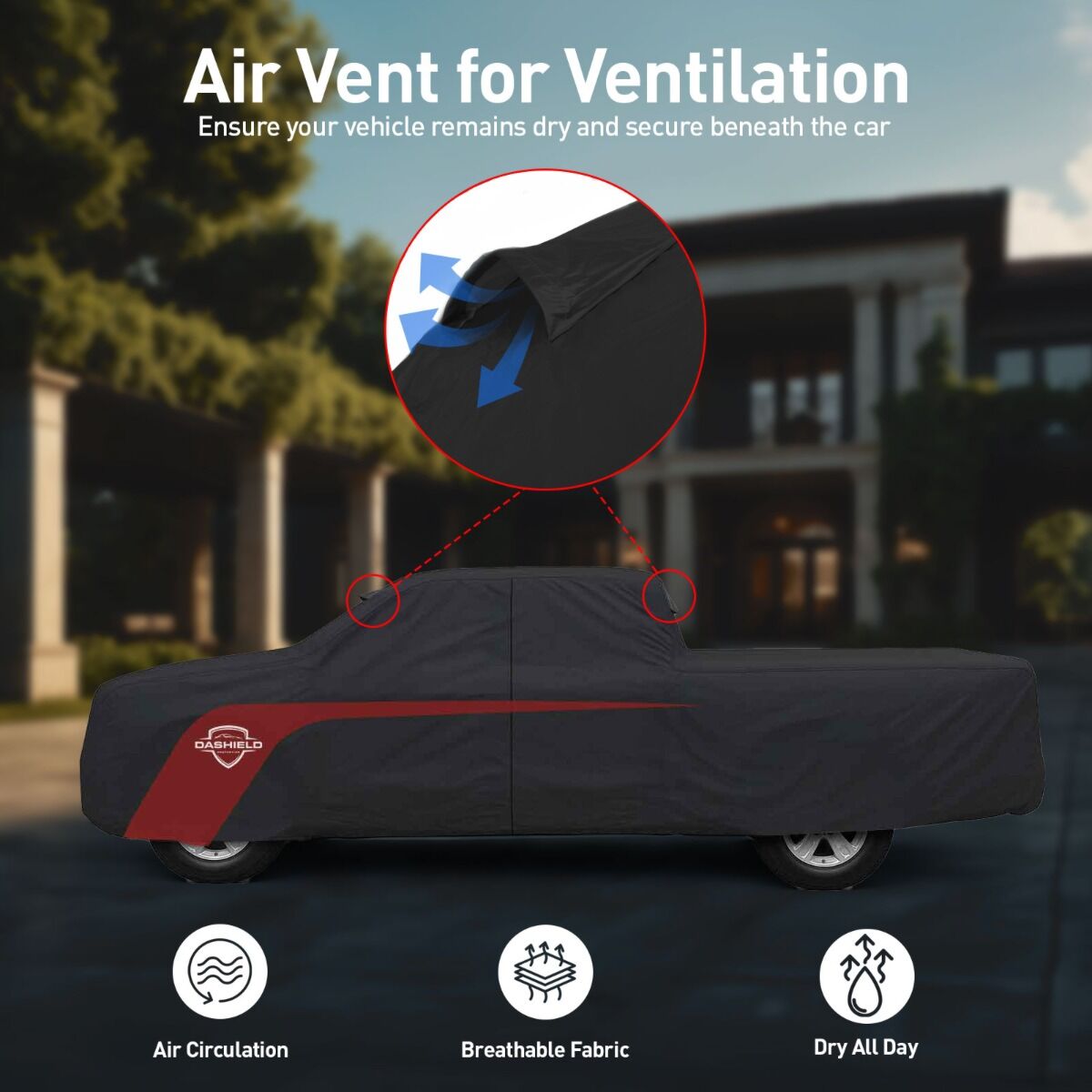 Designed with front and rear air vents to release trapped moisture and prevent condensation buildup, keeping your car dry and protected. These vents also help reduce heat buildup inside, so your vehicle stays cooler—even on hot days.